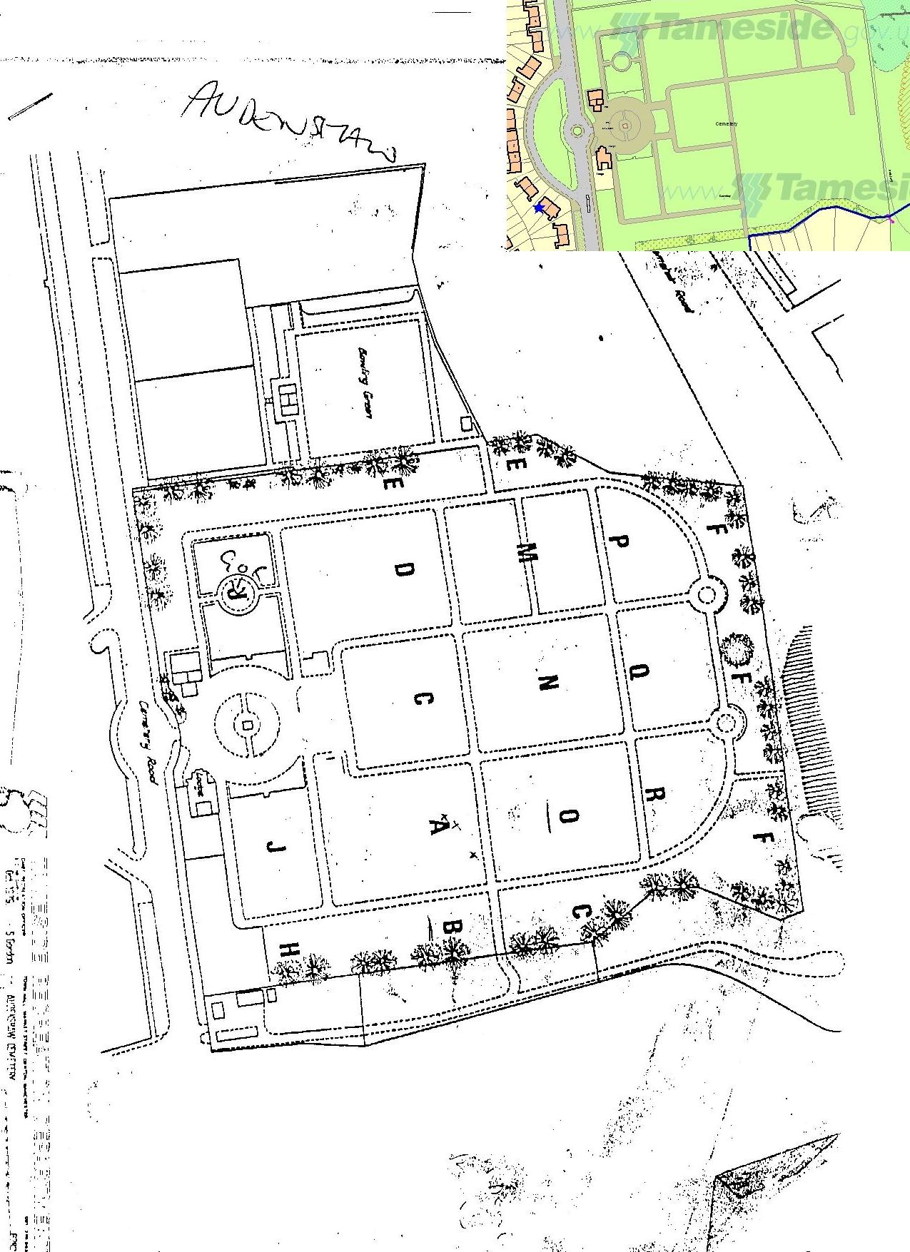 An Audenshaw Cemetery plan / map is (Cemetery Road, M34 5AH next to Cemetery park) available from me here and Google maps