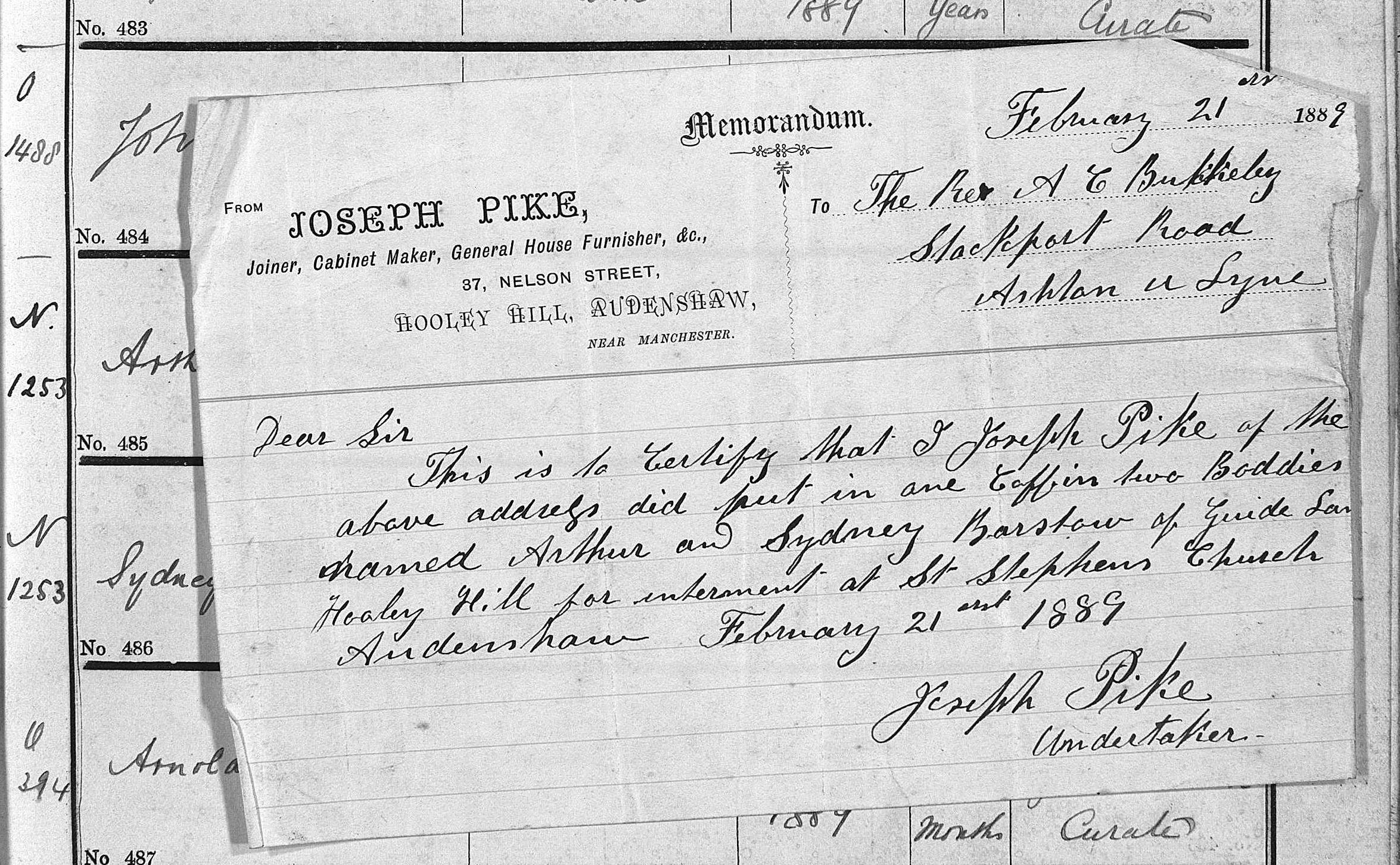 same day (21st Feb 1889) in the same coffin (see St Stephens church