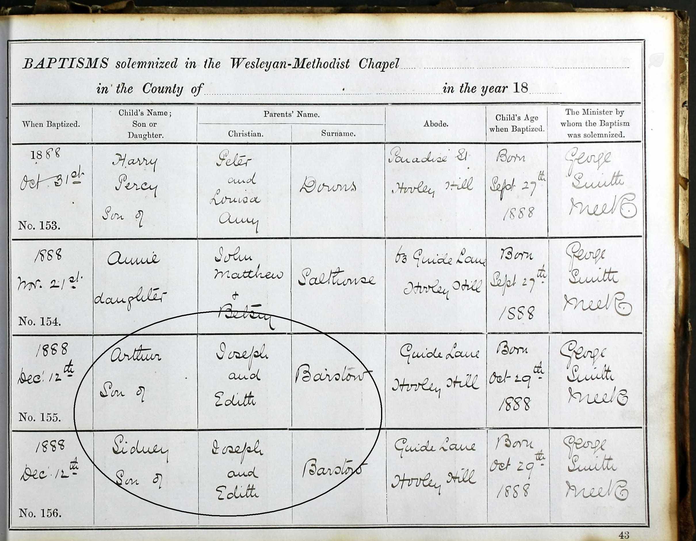 Local registry office birth entries for Arthur and Sydney in 1888, AUD/54/63.